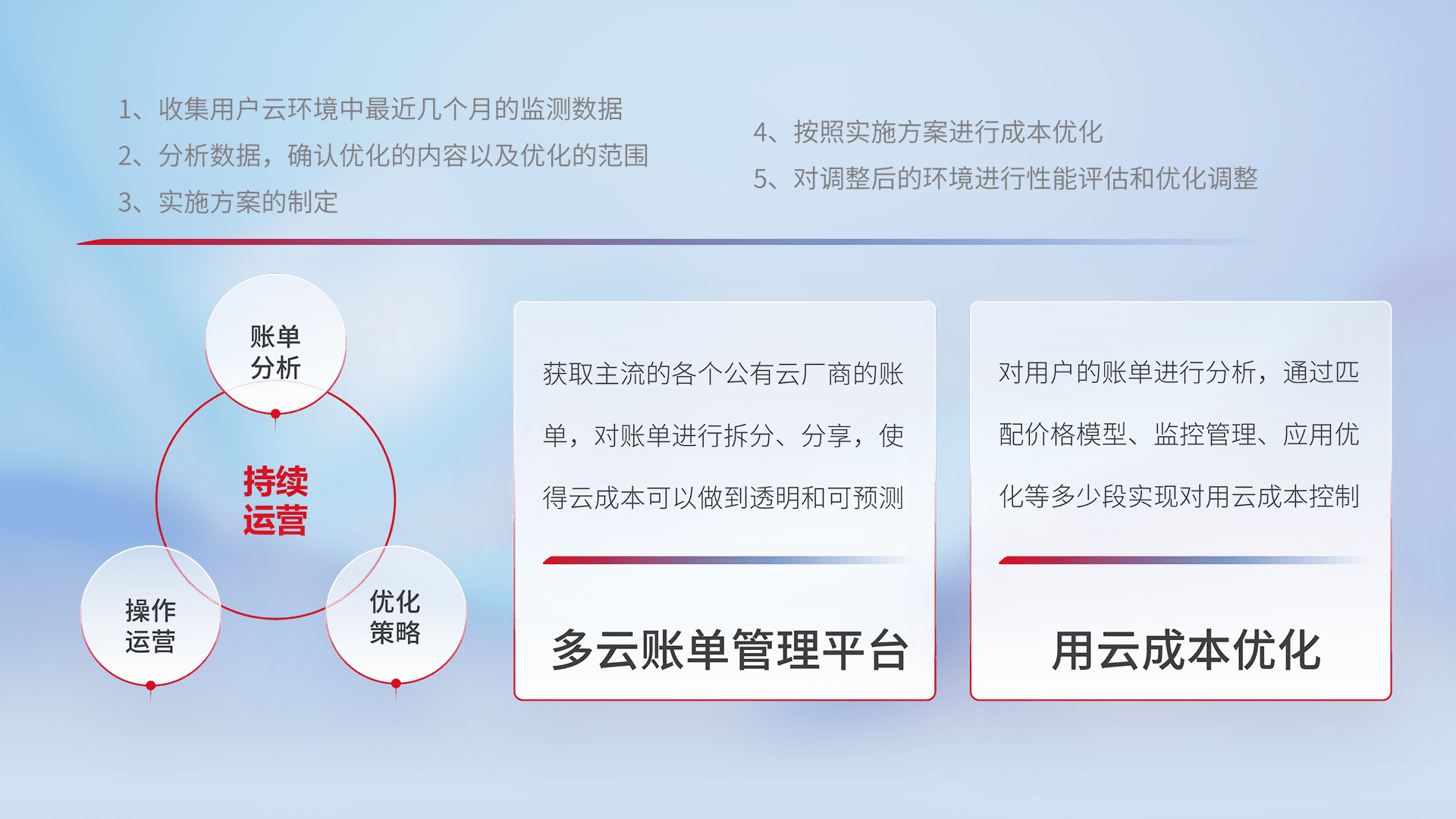 运用智能化工具分析云资源,,,提供日常费用可视化工具,,自动账单拆分,,,,成本优化云上费用,,,,降本增效。。。